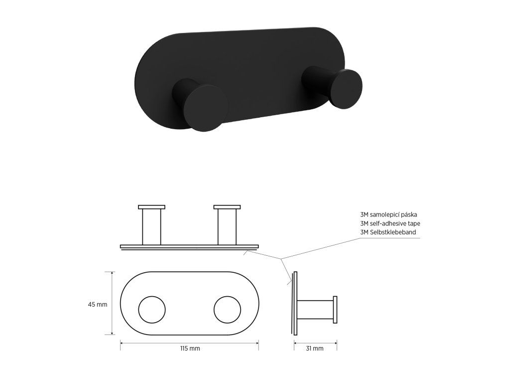 Sapho X-ROUND BLACK samolepiaci dvojháčik, čierna mat XR220B