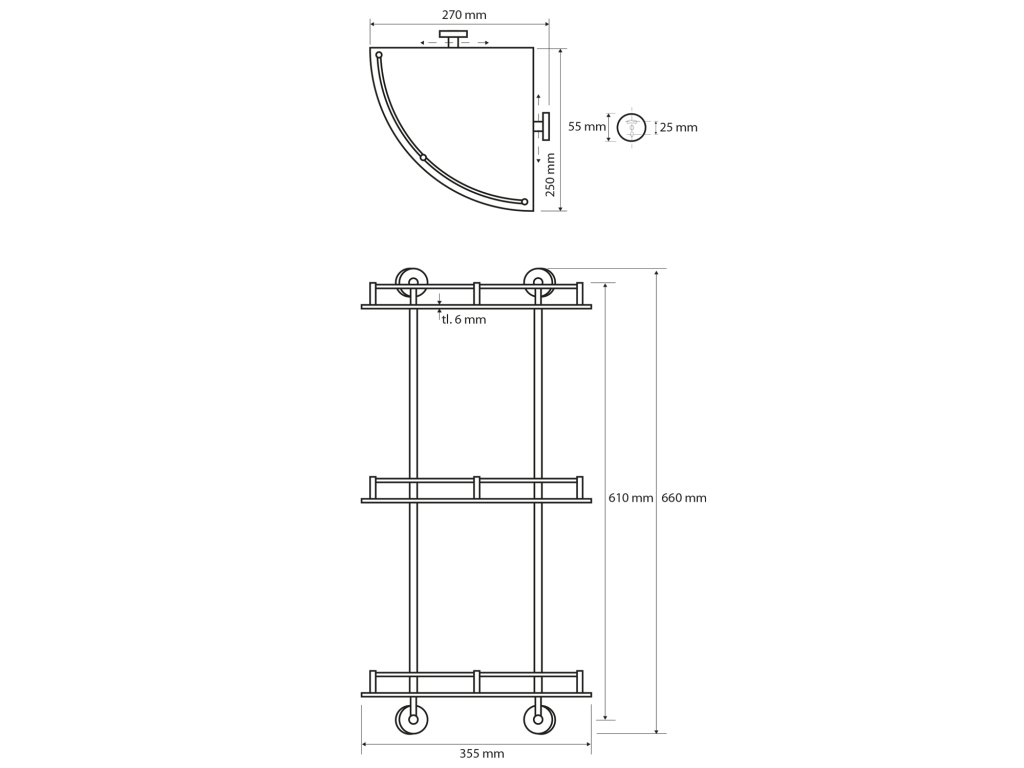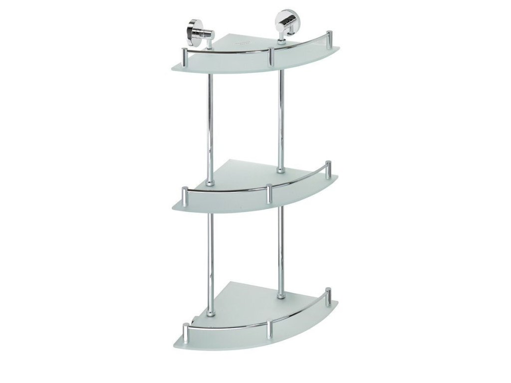 Sapho X-ROUND E polička sklo roh trojitá s hrazdou, 270x660x355mm, chróm XR606