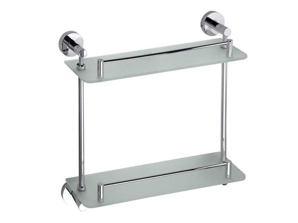 Sapho X-ROUND E sklenená polička dvojitá 400mm, chróm XR602