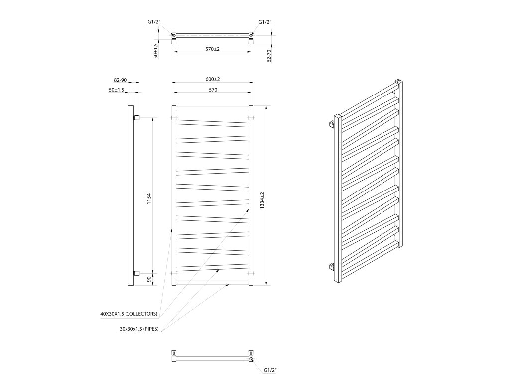 Sapho ZIG vykurovacie teleso 600x1334mm, čierna mat ZG613B