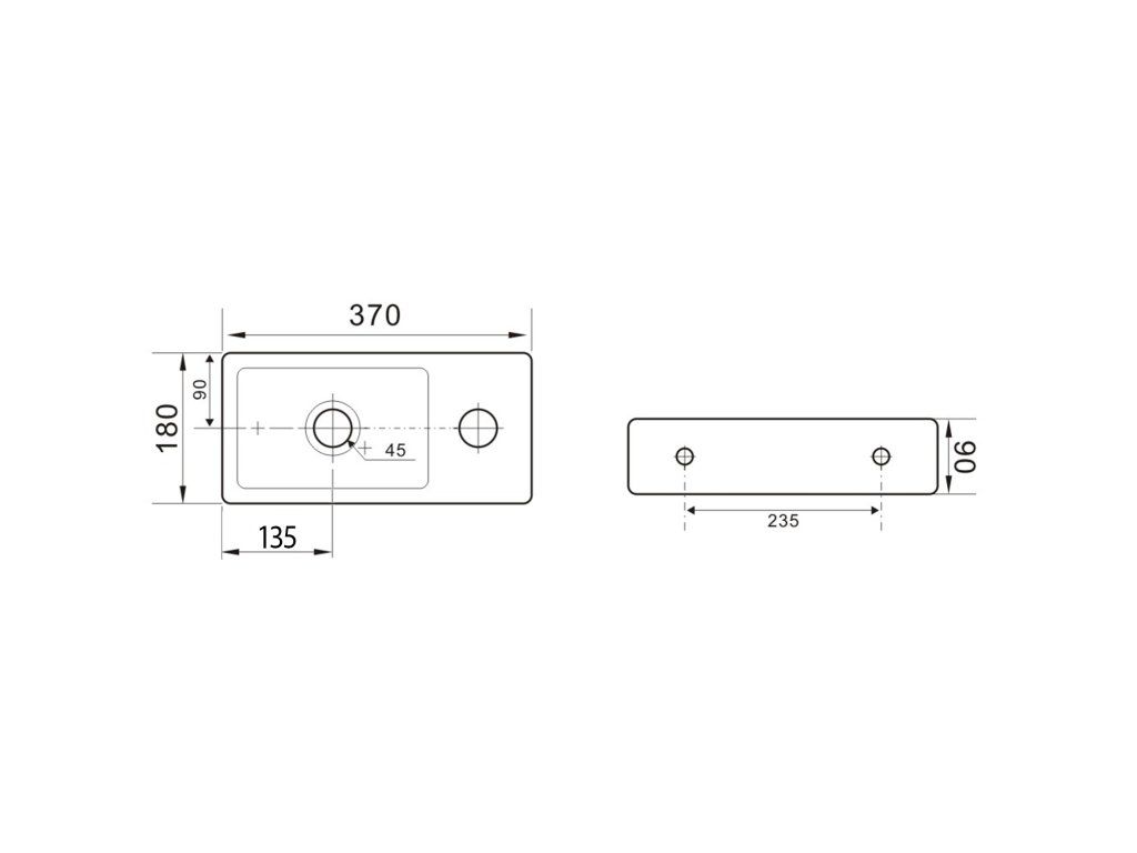 Sapho ZOE keramické umývadlo 37x18cm, otvor pre batériu vpravo, biela AR495