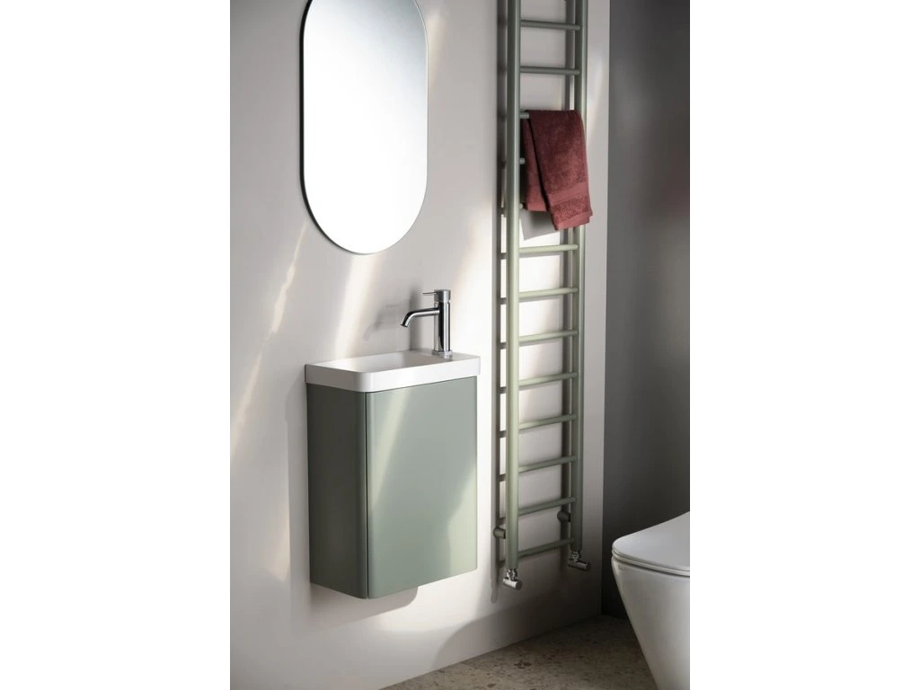 Séria kúpeľňového nábytku ZORBA je navrhnutá na maximálne využitie priestoru v menších kúpeľniach a toaletách. Skrinka so zaoblenými bokmi a dvierkami zaujme svojím dizajnom a zároveň ponúka praktický úložný priestor na čistiace prostriedky alebo toaletný papier. Otvára sa pomocou systému TIP-ON, vďaka ktorému zostáva predná plocha čistá a prehľadná.