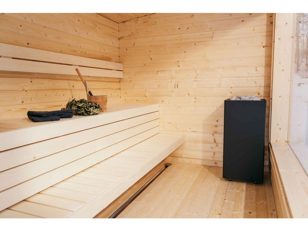Model CORE je navrhnutý s ohľadom na čistý severský štýl, ktorý prirodzene zvýrazňuje krásu saunových kameňov. Môže sa dodávať v elegantnom čiernom vyhotovení alebo bez krytu na individuálne obloženie (napr. drevom, kameňom alebo keramikou), aby vyhovoval dizajnu vašej sauny.
