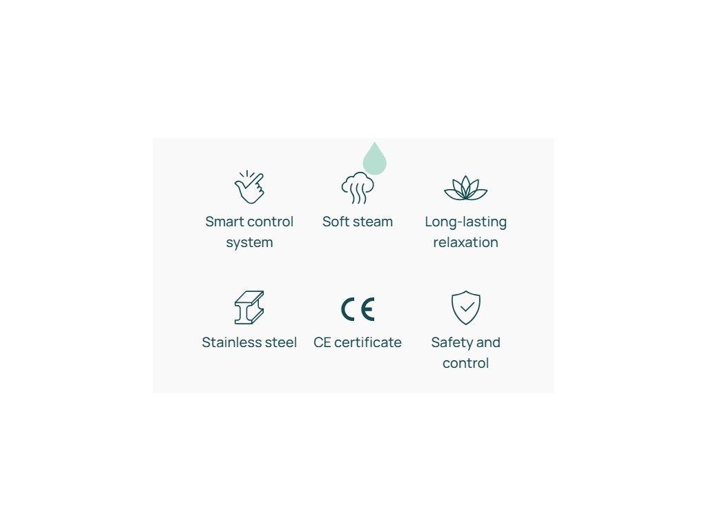 Dva prevádzkové režimy - klasická suchá sauna a jemná mokrá para vďaka zabudovanej nádrži na vodu s objemom 3 - 5 litrov. V mokrom režime dokáže produkovať paru až 2 hodiny.