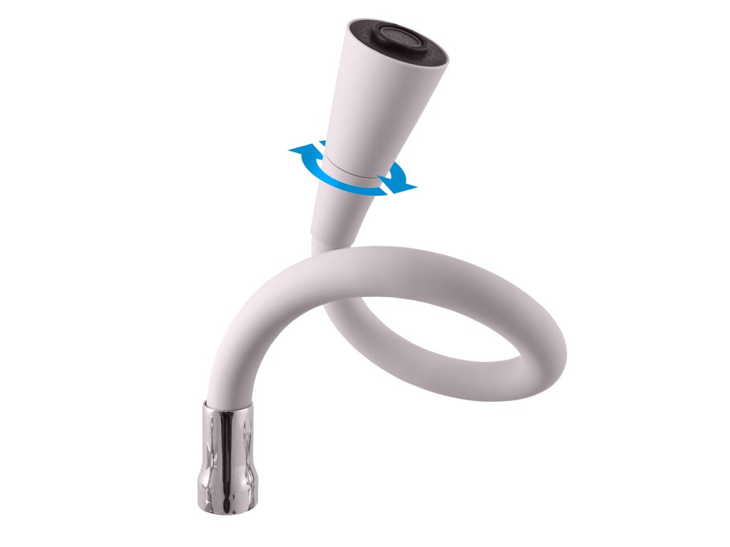 Nástenná drezová batéria s flexibilným otočným ramenom so sprchou.