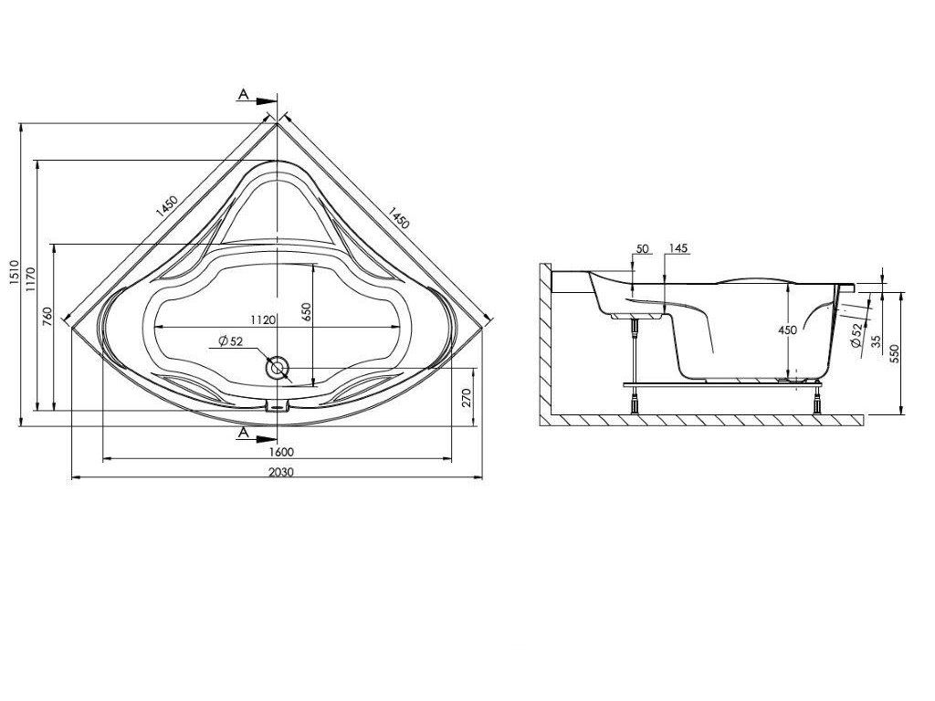 | Wivea 145 | 145 cm | 145 cm | 45 cm / 58,5 cm | 210 l |