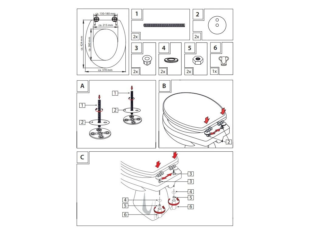 - Obsahuje kompletný montážny materiál na rýchlu a jednoduchú inštaláciu záchodového sedadla