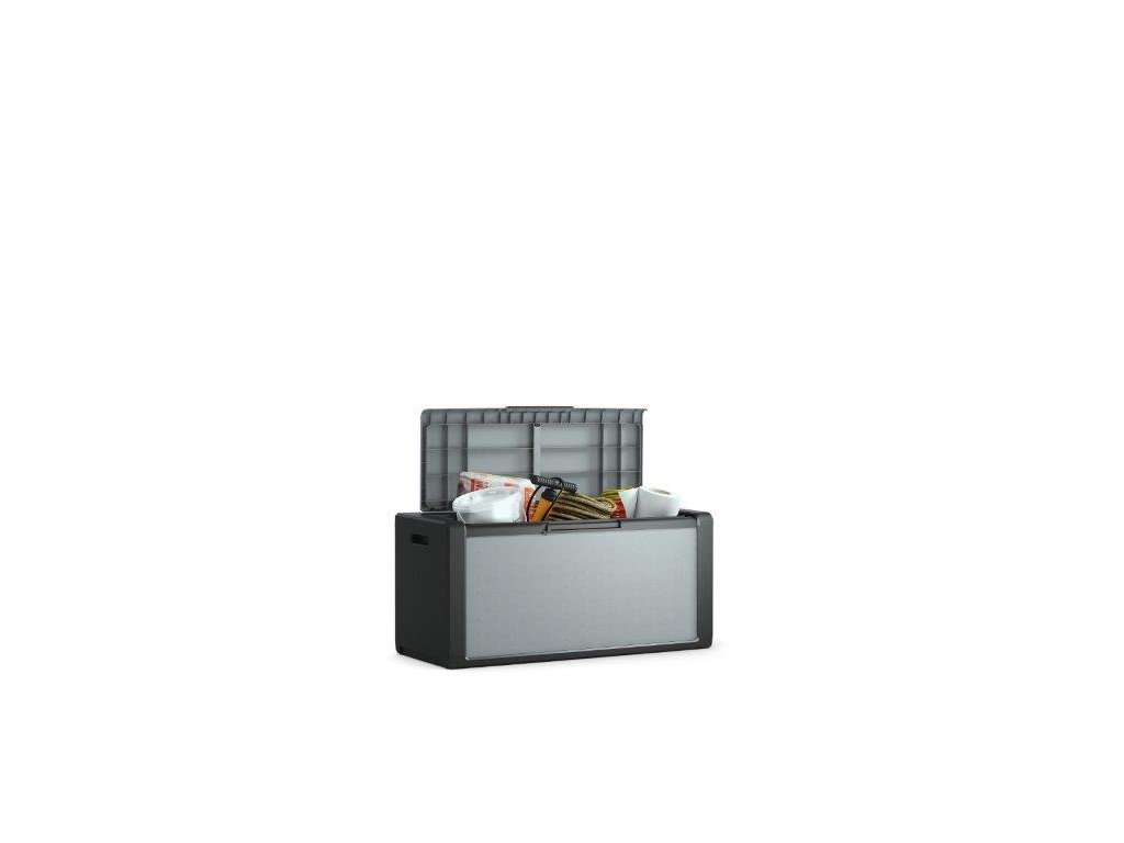 Odolná úložná truhlica na vonkajšie použitie. Truhlica Keter Titan poskytuje bezpečné a prehľadné skladovanie vankúšov, prikrývok, náradia alebo záhradného príslušenstva. Vďaka objemu 300 litrov a odolnosti voči vlhkosti ju oceníte na terase, v altánku alebo v záhradnom domčeku.