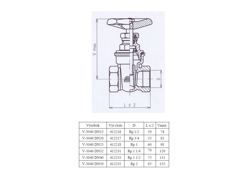 SLOVARM V-3040 šupátko DN50 bez tesnenia, vnútorný závit, voda, mosadz, 412235