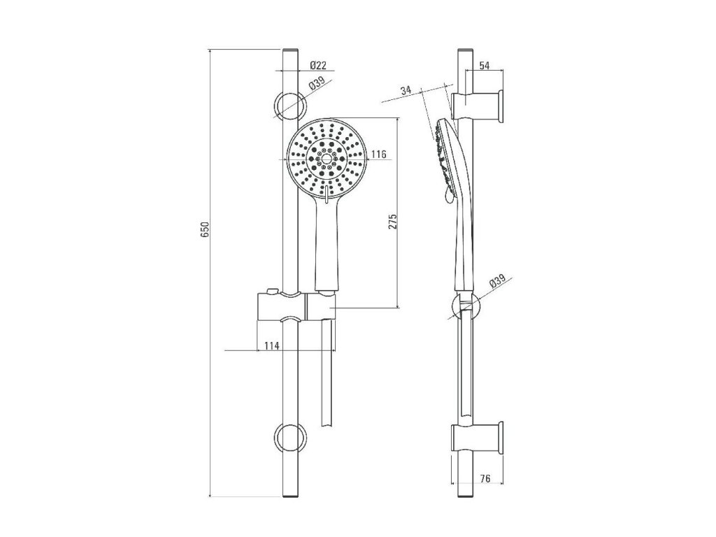 • Posuvný držiak ručnej sprchy so systémom easy