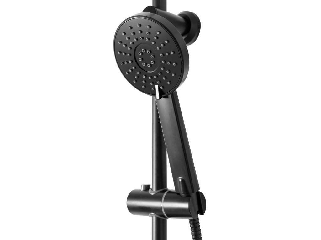 Sprchová súprava Luis vrátane batérie - celá v matnej čiernej farbe - je vhodná do klasických, moderných a retro kúpeľní. Moderný jedinečný dizajn a vysoká kvalita použitých materiálov zaručujú dlhú životnosť a spoľahlivosť. So sprchovou súpravou Luis zažijete komfort pri každodennom sprchovaní. Obsahuje hlavovú sprchu (dažďová sprcha), ručnú sprchu, hadicu, vodovodnú batériu a mydlovničku.