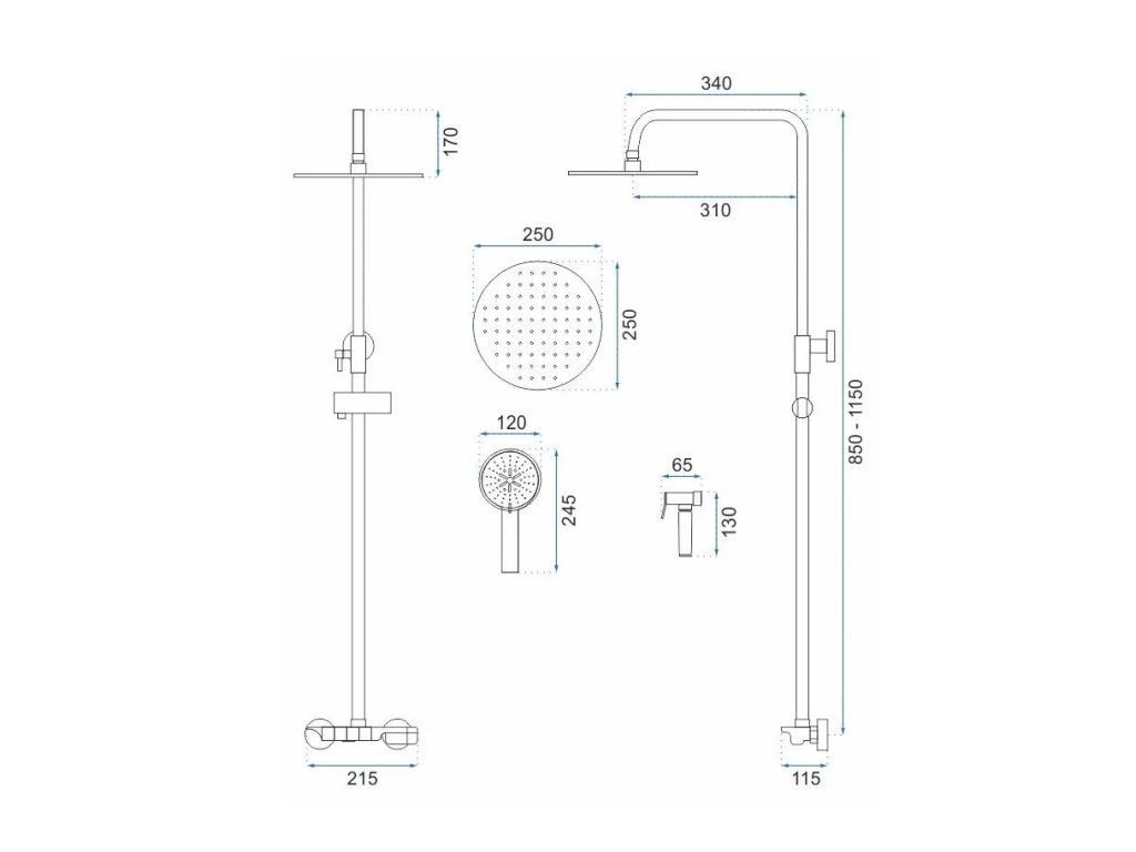 • súčasťou dodávky - hlavová sprcha, ručná sprcha, malá sprcha a zmiešavacia batéria