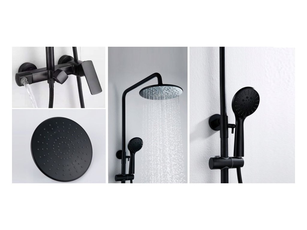 Sprchová súprava Roger vrátane batérie - všetko v čiernej farbe. Vhodná do klasických, moderných a retro kúpeľní. Moderný jedinečný dizajn a vysokokvalitné materiály zaručujú dlhú životnosť a spoľahlivosť. So sprchovou súpravou Roger zažijete komfort pri každodennom sprchovaní. Obsahuje hlavovú sprchu (dažďová sprcha), ručnú sprchu, hadicu, vodovodnú batériu a vaňový odtok.