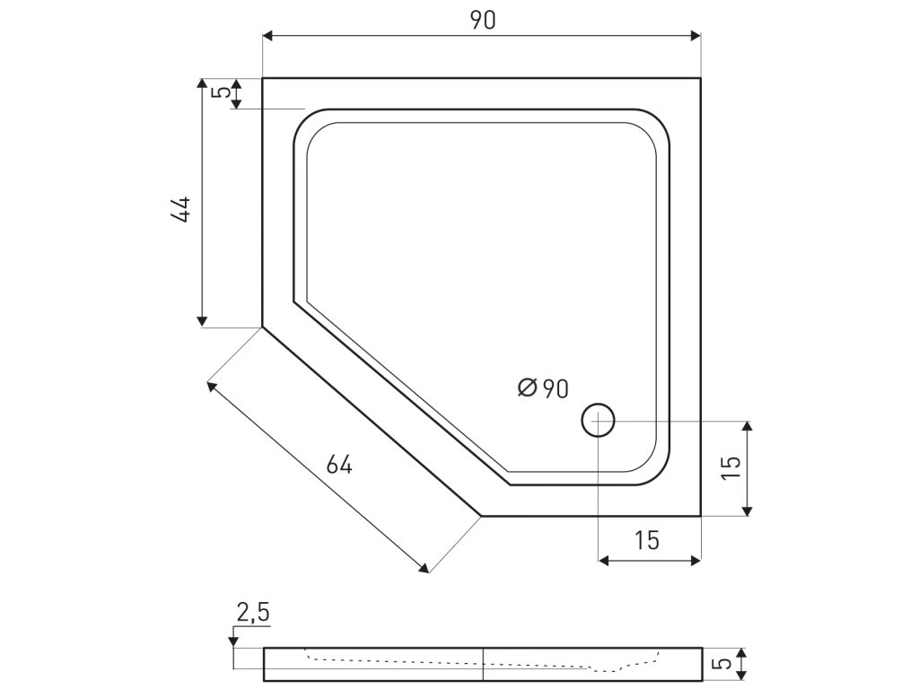 - priemer sifónu 90 mm, ďalšie špecifikácie nájdete na výkrese