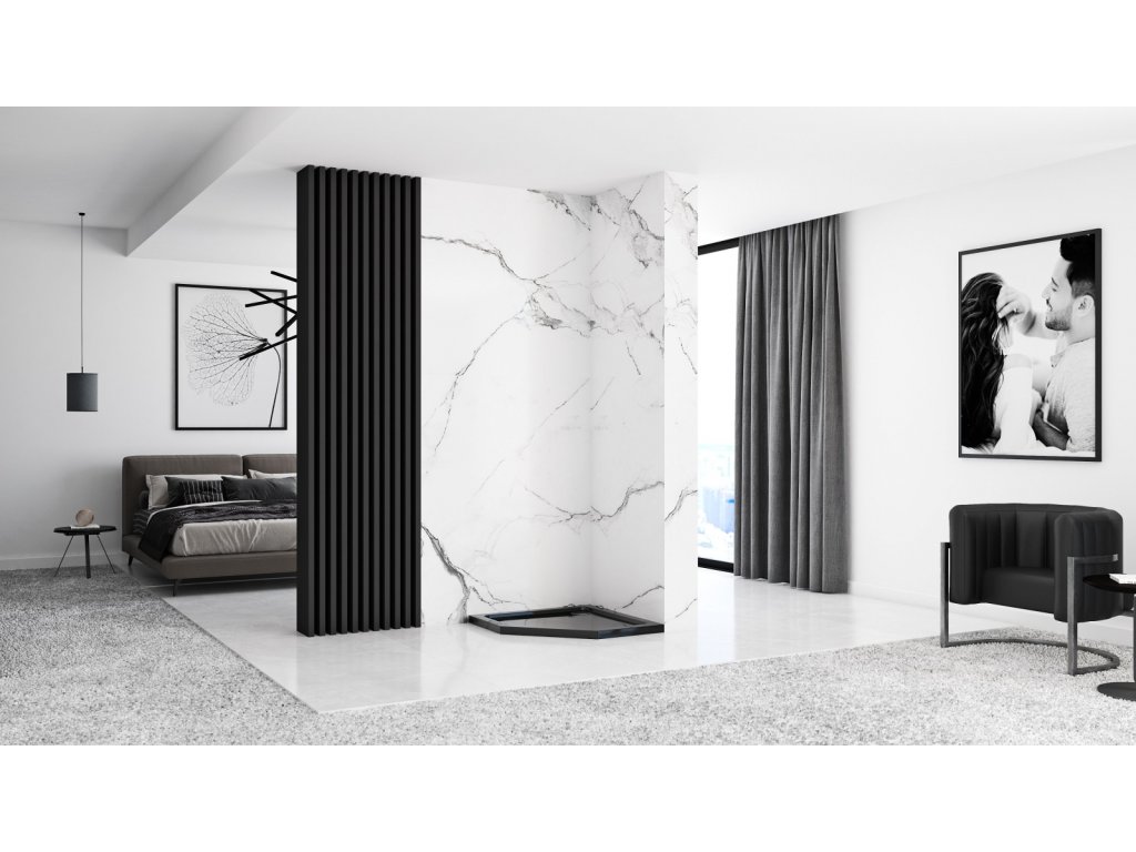 Praktická a kvalitná sprchová vanička v čiernej farbe, vyrobená z vysokokvalitného sanitárneho akrylátu.