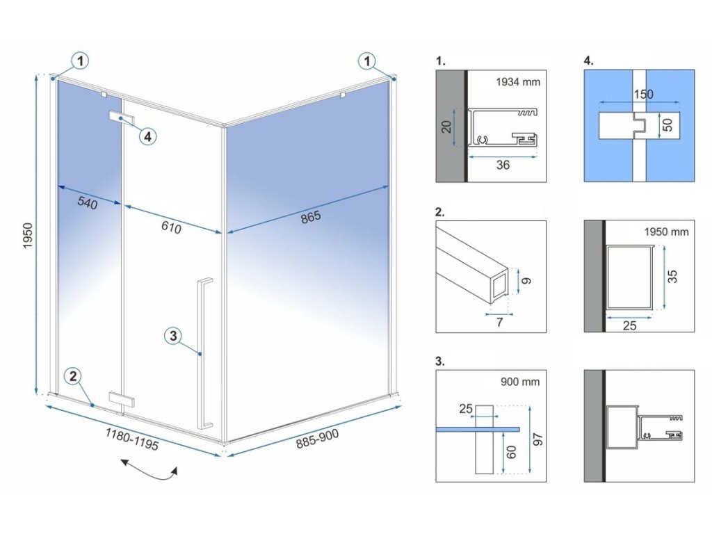 Špecifikácie sprchového kúta Fargo 120x90x195