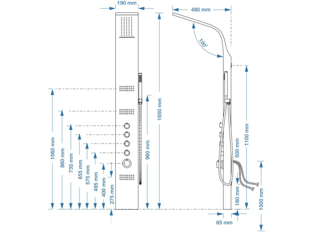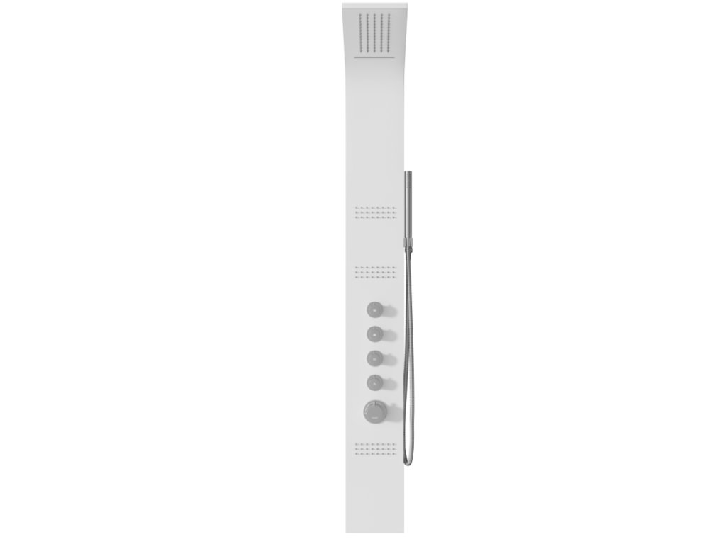Vďaka kombinácii nehrdzavejúcej ocele, odolnej mosadze, hliníka a keramiky je sprchový panel Kaskada prakticky bezchybný. Použitím špeciálnej technológie Saving sa znížila nadmerná spotreba, vďaka čomu je tento panel vysoko účinným a úsporným výrobkom. Masážny panel Kaskada vám poskytne masážnu, dažďovú a ručnú sprchu.