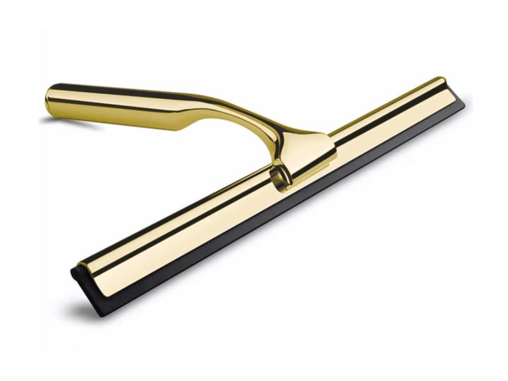 Elegantná kúpeľňová stierka s rukoväťou a držiakom je dokonalým riešením na udržiavanie čistoty vo vašej kúpeľni. Pomocou stierky ľahko a rýchlo odstránite prebytočnú vodu zo skleneného povrchu bez toho, aby sa na ňom vytvárali nežiaduce šmuhy. Súčasťou súpravy je držiak, ktorý sa dá namontovať na stenu bez vŕtania.