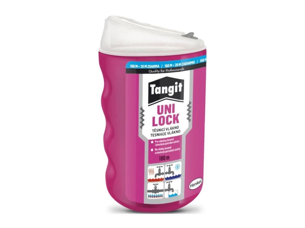 - Polyamidový závit potiahnutý inertnou ochrannou pastou, balený v ergonomicky vhodnom plastovom obale a používaný na utesnenie závitov potrubia