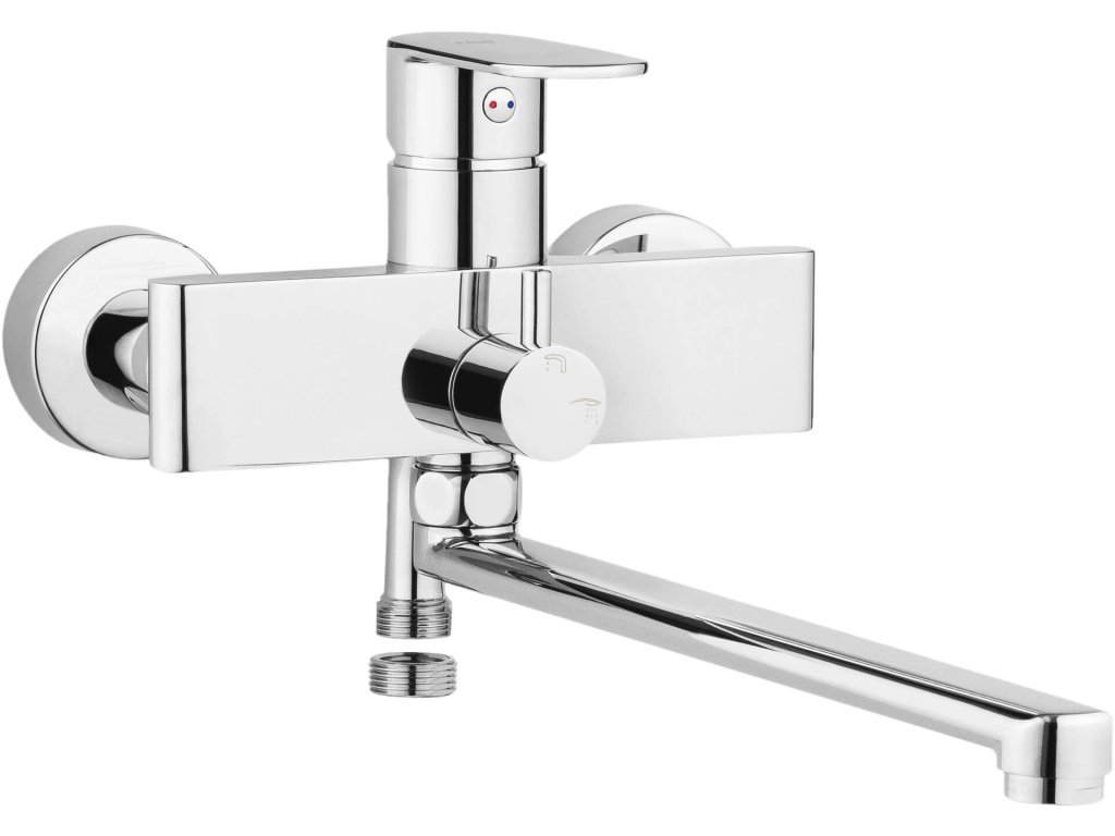 Nástenná umývadlová batéria s dlhou výtokovou rúrkou a prípojkou na hadicu je vhodná do kúpeľne aj do technickej miestnosti. Táto jednopáková nástenná batéria s dlhou praktickou výtokovou rúrkou je ideálna na mnohé činnosti spojené s plnením vysokých nádob vodou, čistením, namáčaním atď. Rovnako ako ostatné batérie z kolekcie Alpinia, aj táto nástenná umývadlová batéria sa vyznačuje zaoblenými líniami a rovnými plochami páky a výtoku, ako aj obdĺžnikovým prvkom s prepínačom, ktorý dômyselne skrýva upevnenie batérie na stenu.Rovnako ako ostatné batérie z kolekcie Alpinia sa aj táto nástenná umývadlová batéria vyznačuje zaoblenými líniami a plochými povrchmi páky a výtoku, ako aj obdĺžnikovým prvkom s prepínačom, ktorý šikovne skrýva prvky na upevnenie batérie na stenu. Batéria v lesklom chróme má veľmi elegantný vzhľad a je vybavená perlátorom, ktorý prevzdušňuje prúd vody, aby sa znížila jej spotreba, a prídavným konektorom na pripojenie práčky alebo umývačky riadu.