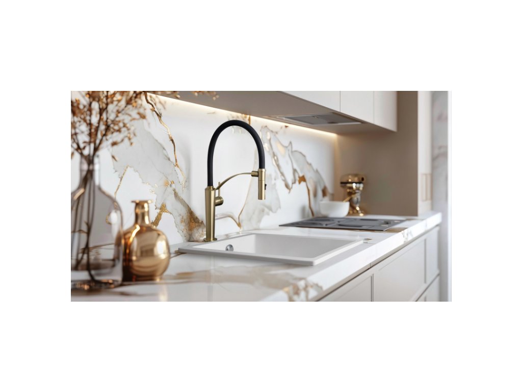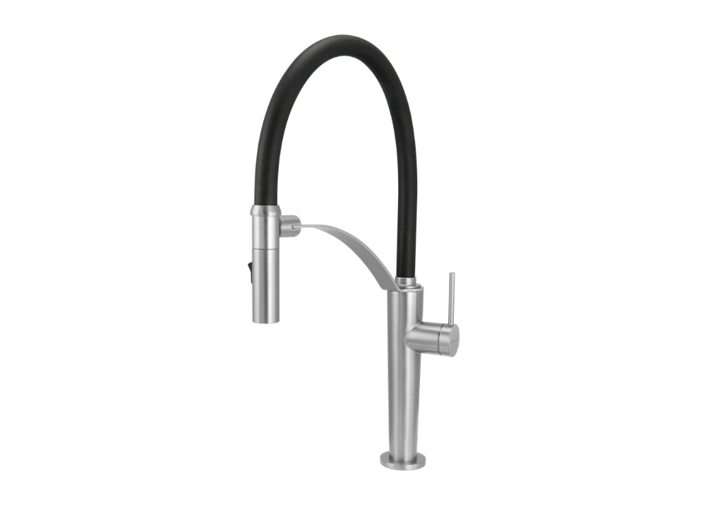 Kuchynská drezová batéria Corda v prevedení brúsený chróm zaujme svojím moderným dizajnom a funkčnosťou. Vďaka flexibilnej výpustnej rúre, ktorá sa odkrýva pomocou magnetu, je práca v kuchyni oveľa jednoduchšia. Flexibilná výtoková rúra uľahčuje umývanie veľkých hrncov a plnenie vysokých nádob vodou. Dvojfunkčná rukoväť umožňuje zmenu z prevzdušneného prúdu na dažďovú sprchu, ktorá je ideálna na oplachovanie ovocia a zeleniny. Chrómový povrch dodáva eleganciu a šmrnc a dokonale sa hodí do moderných aj klasických kuchynských interiérov. Dizajn batérie sa dokonale hodí ku granitovým drezom.