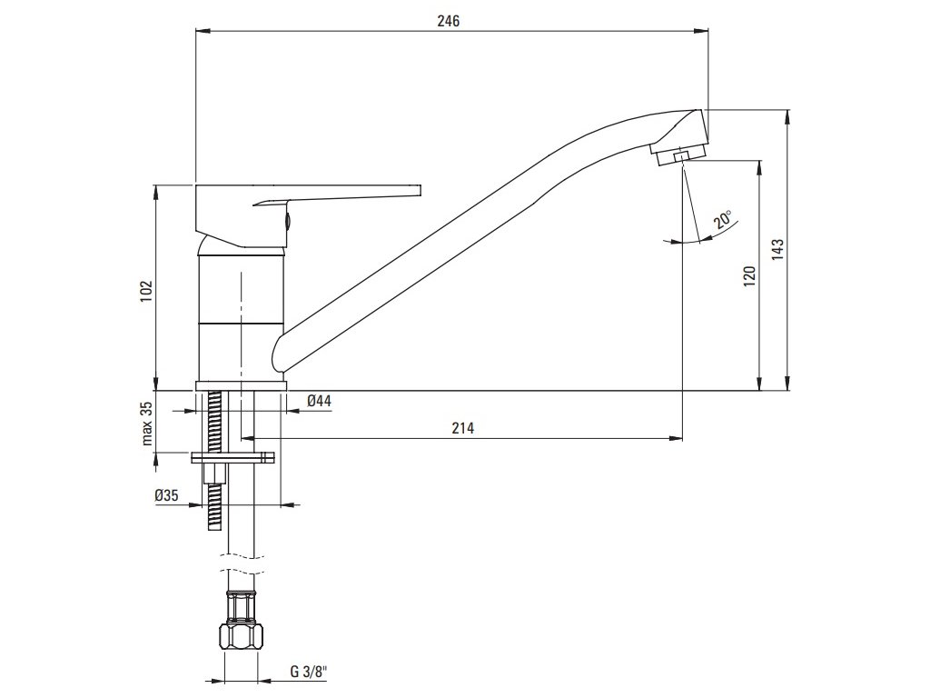 Umývadlová batéria Aplomo Tubo s dlhým otočným ramenom, BUT_060M