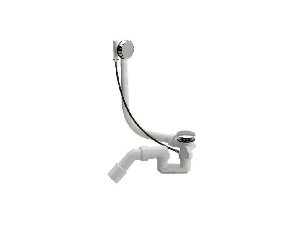 Súprava vaňového odtoku a prepadu Simplex, s flexibilnou prepadovou rúrkou, pochrómovanou otočnou rozetou a odtokovou zátkou so zápachovou uzávierkou a odtokom 40/50.