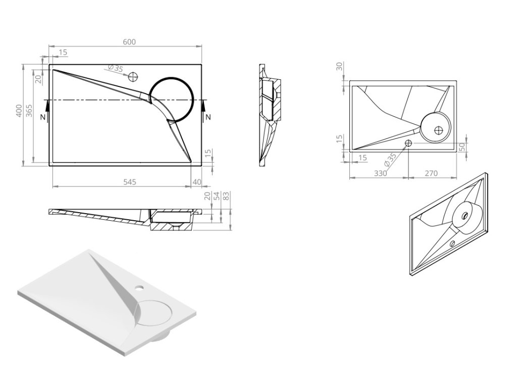 Popis umývadla na dosku Boomerang 60