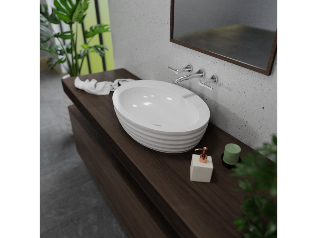 Jedinečné umývadlo na dosku vyrobené z kvalitného liateho mramoru. Vďaka svojmu jednoduchému a elegantnému tvaru je ideálne do každej štýlovej kúpeľne. Skvelá voľba pre tých, ktorí chcú do svojej kúpeľne vniesť luxus. Vďaka najmodernejšej technológii výrobného procesu umývadlo nielenže vyzerá veľmi dizajnovo, ale sa aj ľahko čistí a je mimoriadne odolné.