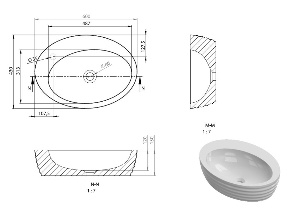 • všetky technické špecifikácie nájdete na výkrese umývadla