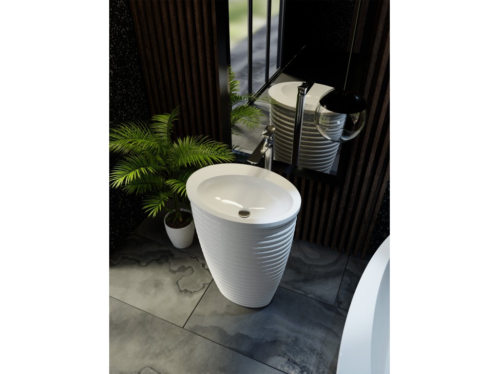 Jedinečné voľne stojace umývadlo vyrobené z kvalitného liateho mramoru. Vďaka svojmu jednoduchému a elegantnému tvaru je ideálne do každej štýlovej kúpeľne. Skvelá voľba pre tých, ktorí chcú do svojej kúpeľne vniesť luxus. Vďaka najmodernejšej technológii výrobného procesu umývadlo nielenže vyzerá veľmi dizajnovo, ale sa aj ľahko čistí a je mimoriadne odolné.