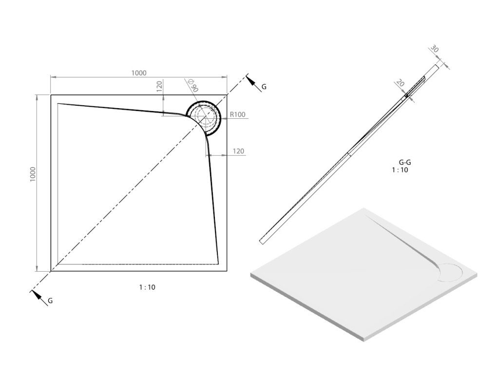 Špecifikácie štvorcovej sprchovej vaničky Boomerang