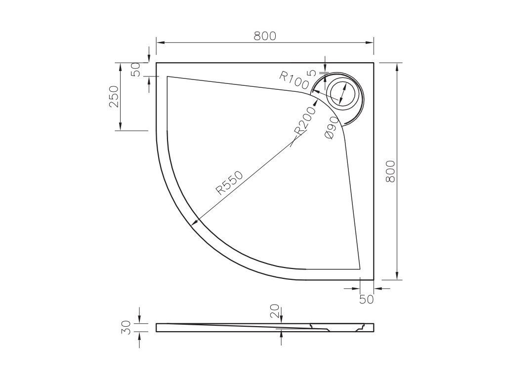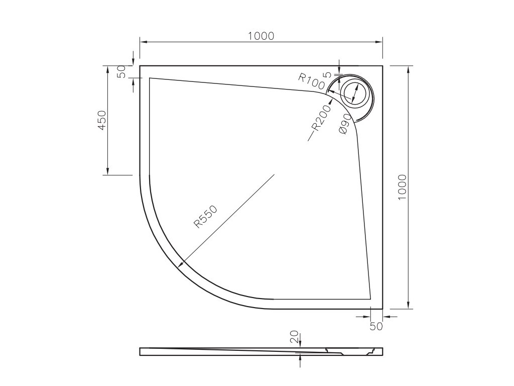 • R550, odtok - ø 90 mm