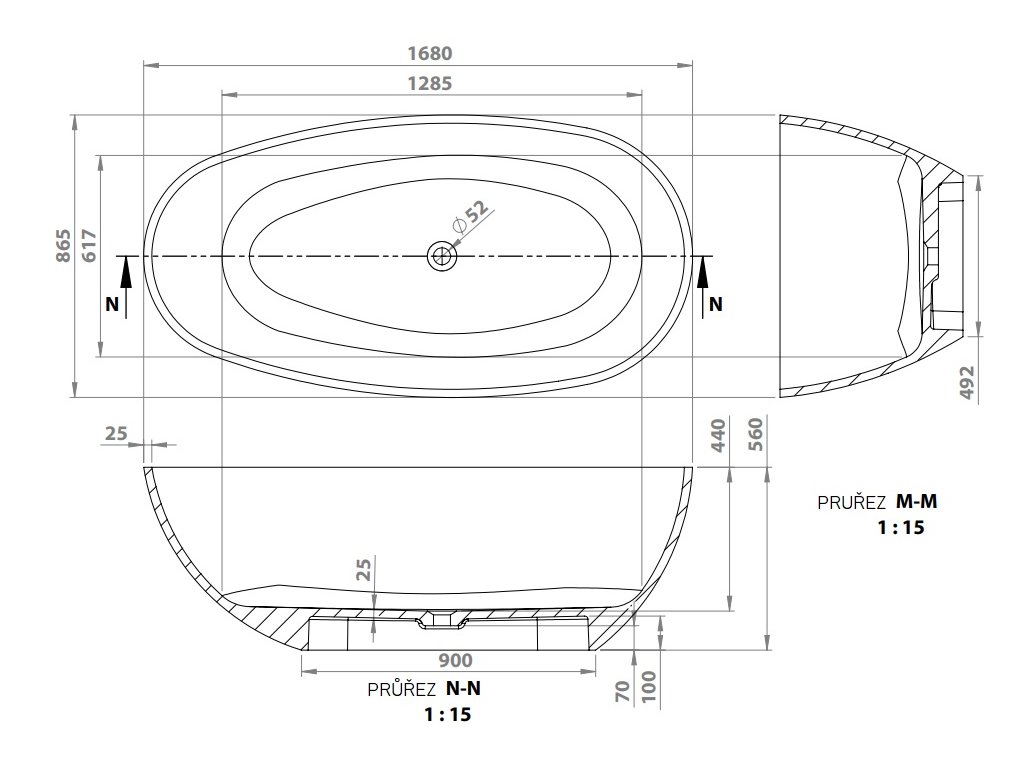 Vayer Lacerta voľne stojaca vaňa 170x85, liaty mramor, VAY-LAC170