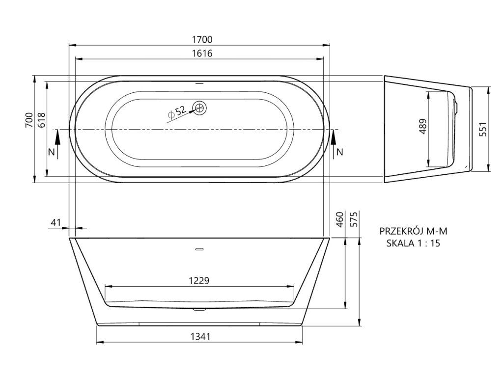 Vayer Sagitta 170x70 voľne stojaca akrylátová vaňa, VAY-SAG