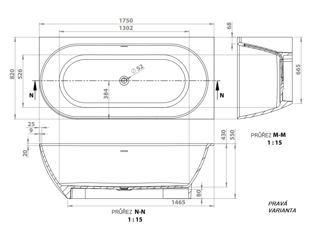 Vayer Scorpius L/P voľne stojaca vaňa 175x82, liaty mramor Dĺžka vane: 175 cm, Orientácia: pravá, VAY-SC175P