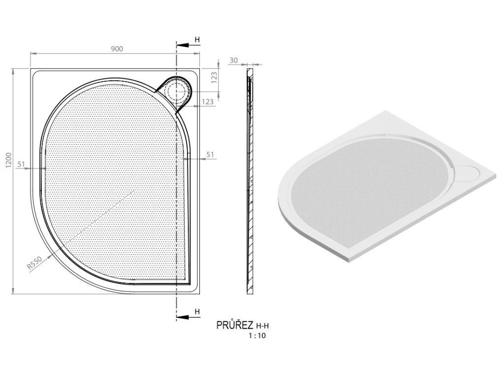 • R550, odtok - ø 90 mm