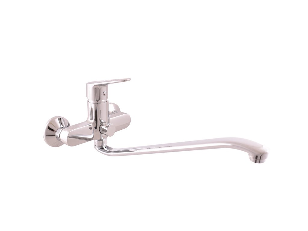 Nástenná batéria pre vaňu a umývadlo s plochým otočným ramenom v tvare písmena "S".
