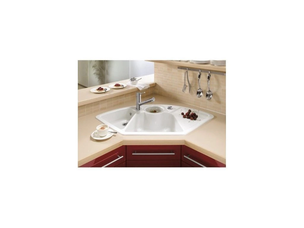 - biely keramický rohový drez