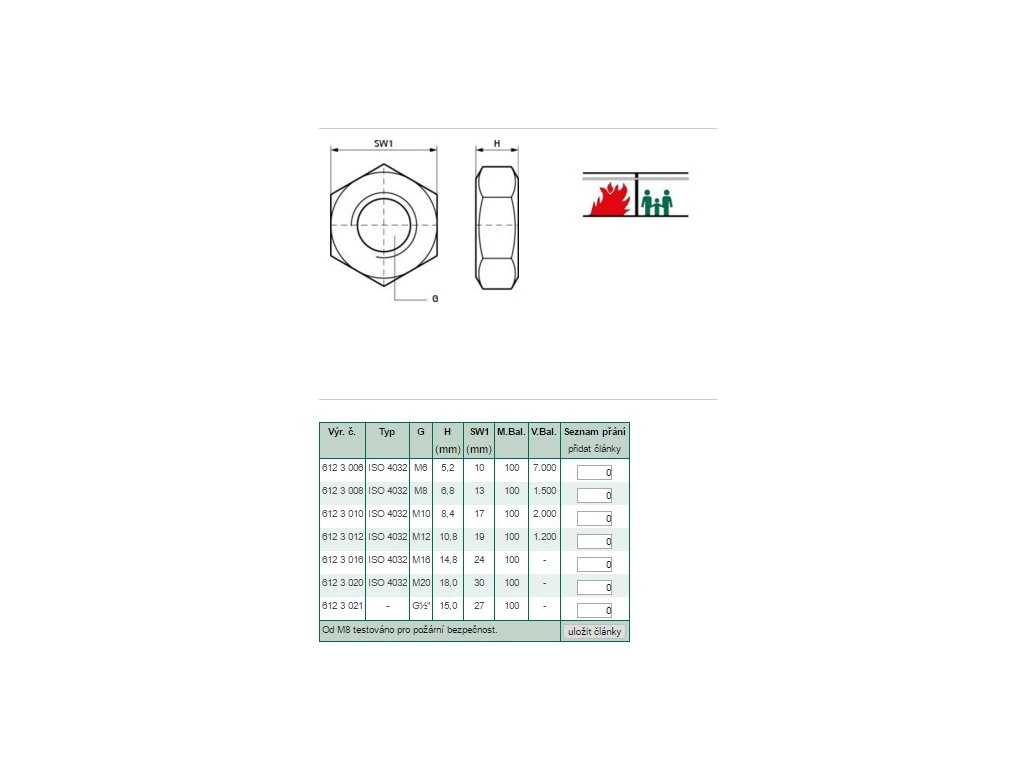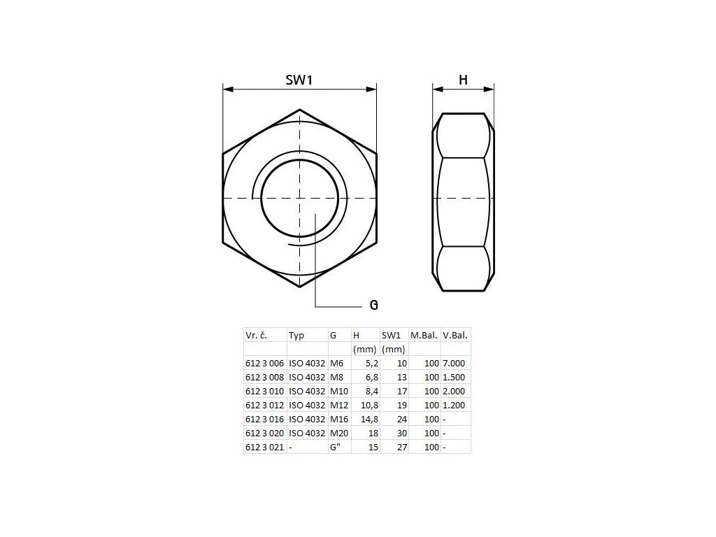 | 6123006 | DIN 934 | M6 | 5,0 | 10 | 100 | 7 000 | ks | 2.50 |