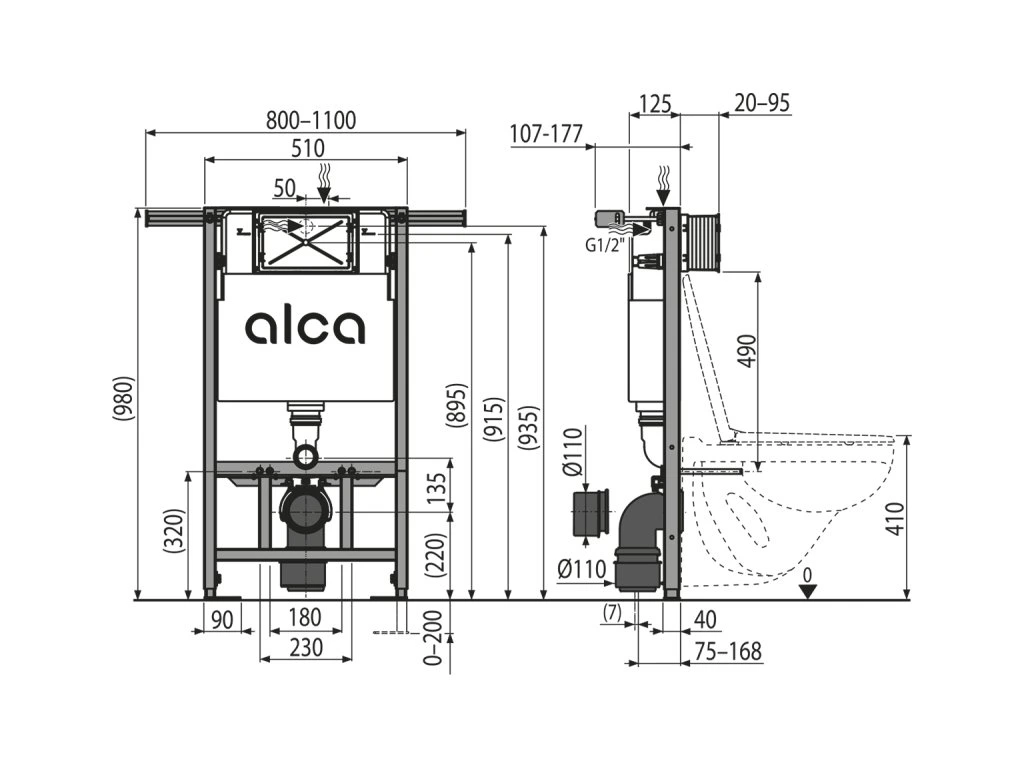 - Na inštaláciu závesného WC s pripojovacou roztečou 180 mm alebo 230 mm