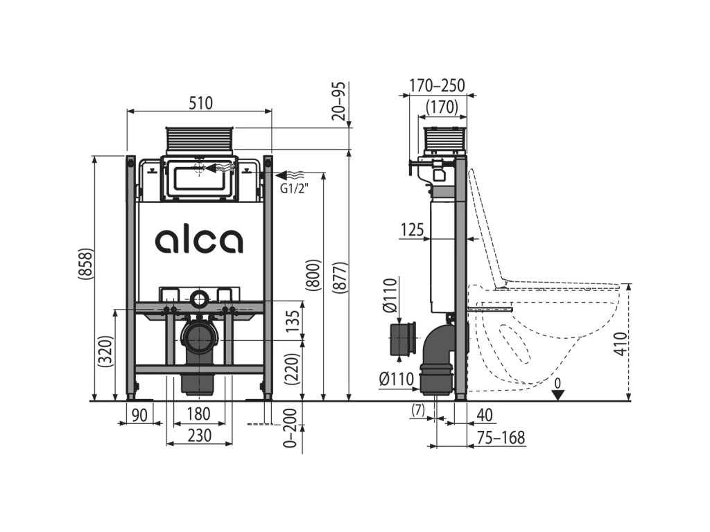 WC modul ALCA na suchú montáž (do sadrokartónu) s ovládaním zhora alebo spredu AM118/850