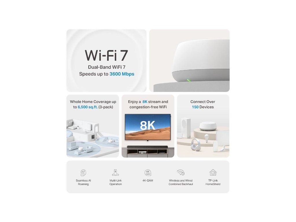 Smerovač vám poskytuje zrýchlenú priepustnosť, vysoký výkon, nízku latenciu a silnú ochranu proti rušeniu. Využívajte obe 2 pásma systému Whole Home Wi-Fi 7 Mesh a dosiahnite rýchlosť až 3 600 Mb/s (2 882 v pásme 5 GHz, 688 Mb/s v pásme 2,4 GHz). Užívajte si špičkový výkon bez preťaženia siete s káblovým aj bezdrôtovým pripojením. Funkcia MLO umožňuje súčasné odosielanie a prijímanie dát v rôznych pásmach.