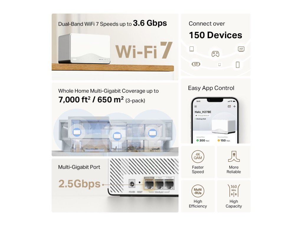 WiFi router TP-Link Mercusys Halo H27BE(2-pack) WiFi 7, BE3600, 1x 2,5GLAN, 2x GLAN, 2,4/5 GHz, 52449900