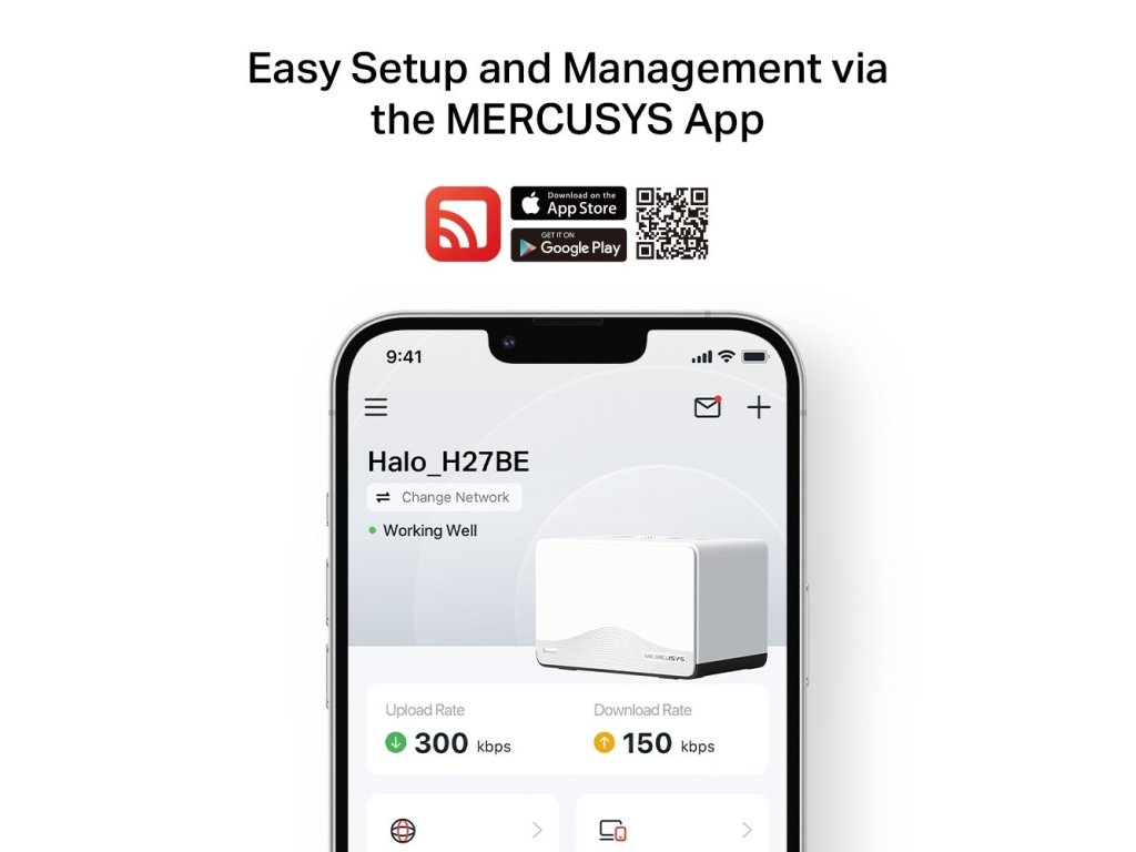 • Jednoduché sprevádzkovanie pomocou aplikácie Mercusys