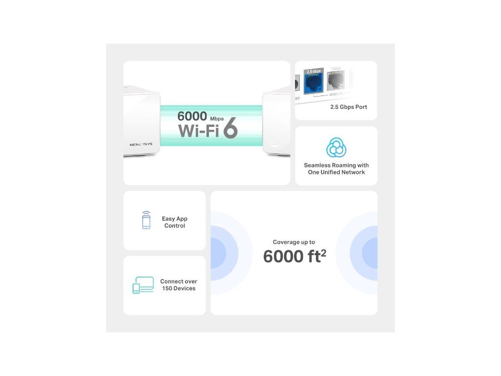 WiFi router TP-Link Mercusys Halo H90X(2-pack) WiFi 6, AX6000, 1x 2.5GLAN, 2x GLAN, 52449606