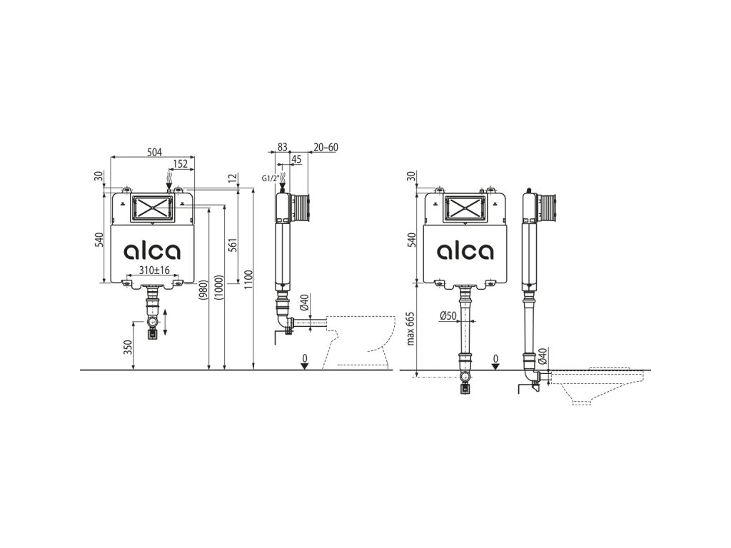 Záchodová nádrž ALCA na murovanie AM1112