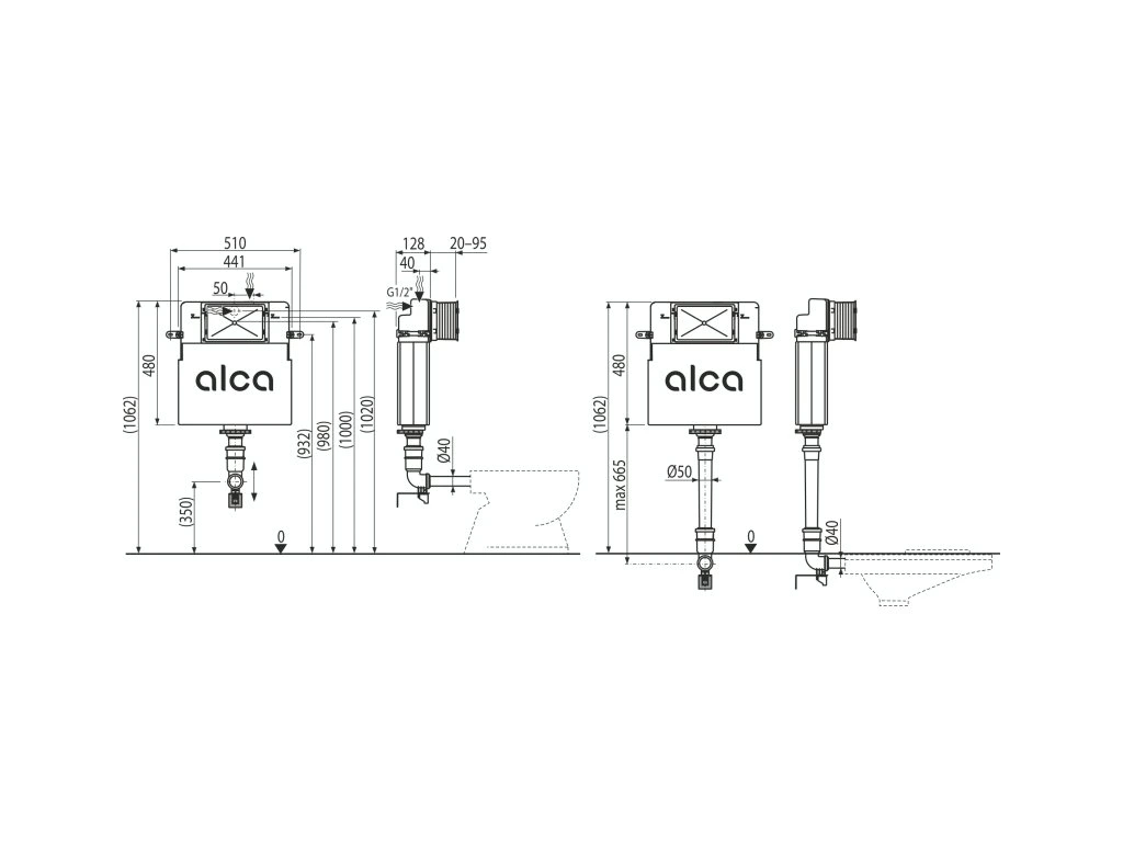 Záchodová nádrž ALCA na zamurovanie AM112