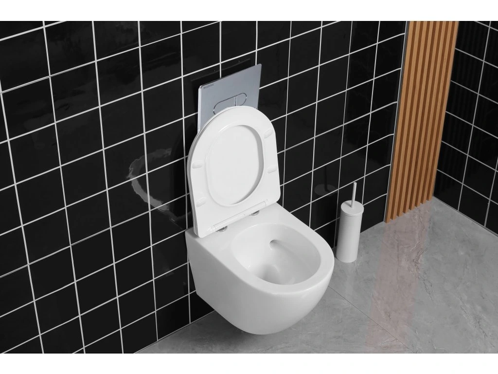 - vrátane štíhleho sedadla s mäkkým zatváraním (duroplast) s rýchloupínacími kovovými závesmi na jednoduchú demontáž a opätovnú montáž