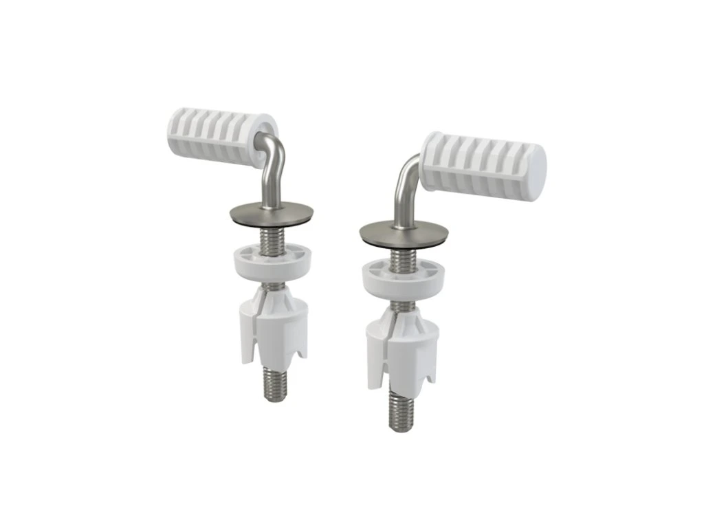- Otáčaním závesov možno nastaviť dĺžku presahu sedadla na záchodovej mise